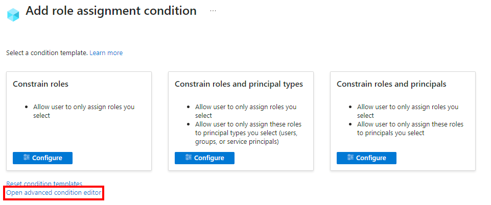 The next challenge is obtaining the condition string. Understanding its format and creating code to easily use it was a task. Either of the resources above will not help you with this, so creating a module to easier manage the complex string for the condition gives value. To do this, I downloaded the Azure role assignment from the portal to investigate the condition string.