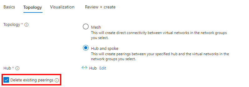 I want to create an hub-spoke topology for this architecture. With the new connectivity feature this is really simle. Two steps
